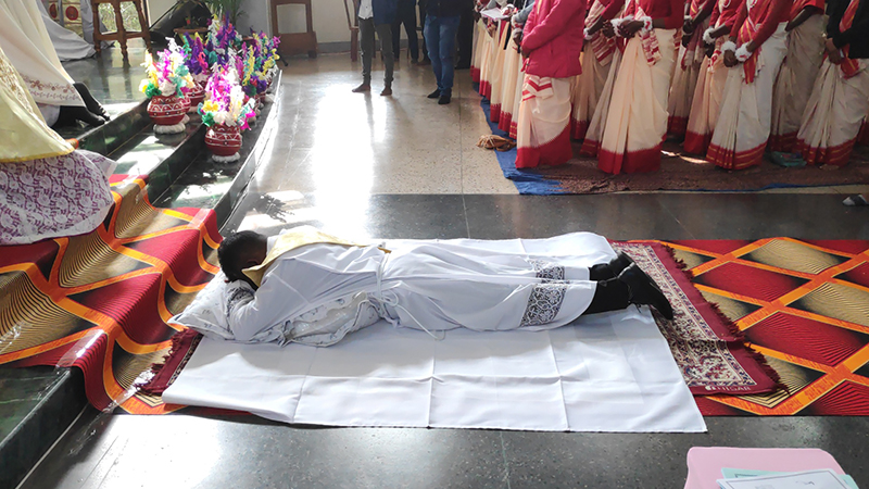अभिषेक  की धर्मबिधि फा . संतोष की अगुवाई में संपन्न हुई । पवित्र यूखरिस्ट के पश्चात नव अभिषिक्त पुरोहित ने सबों का धन्यवाद अदा किया ।  प्रवेश नाच, बाइबल जुलुस, चढ़ावा नाच और विसर्जन नाच के द्वारा समारोह अत्यंत भक्तिमय बन गया ।