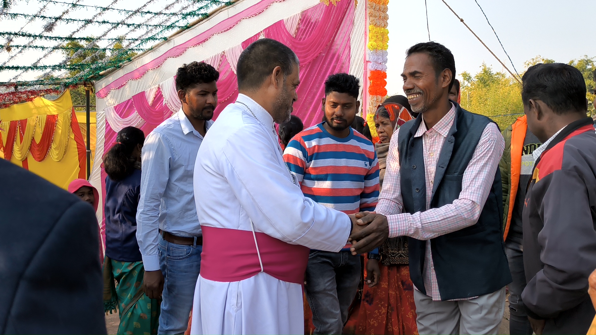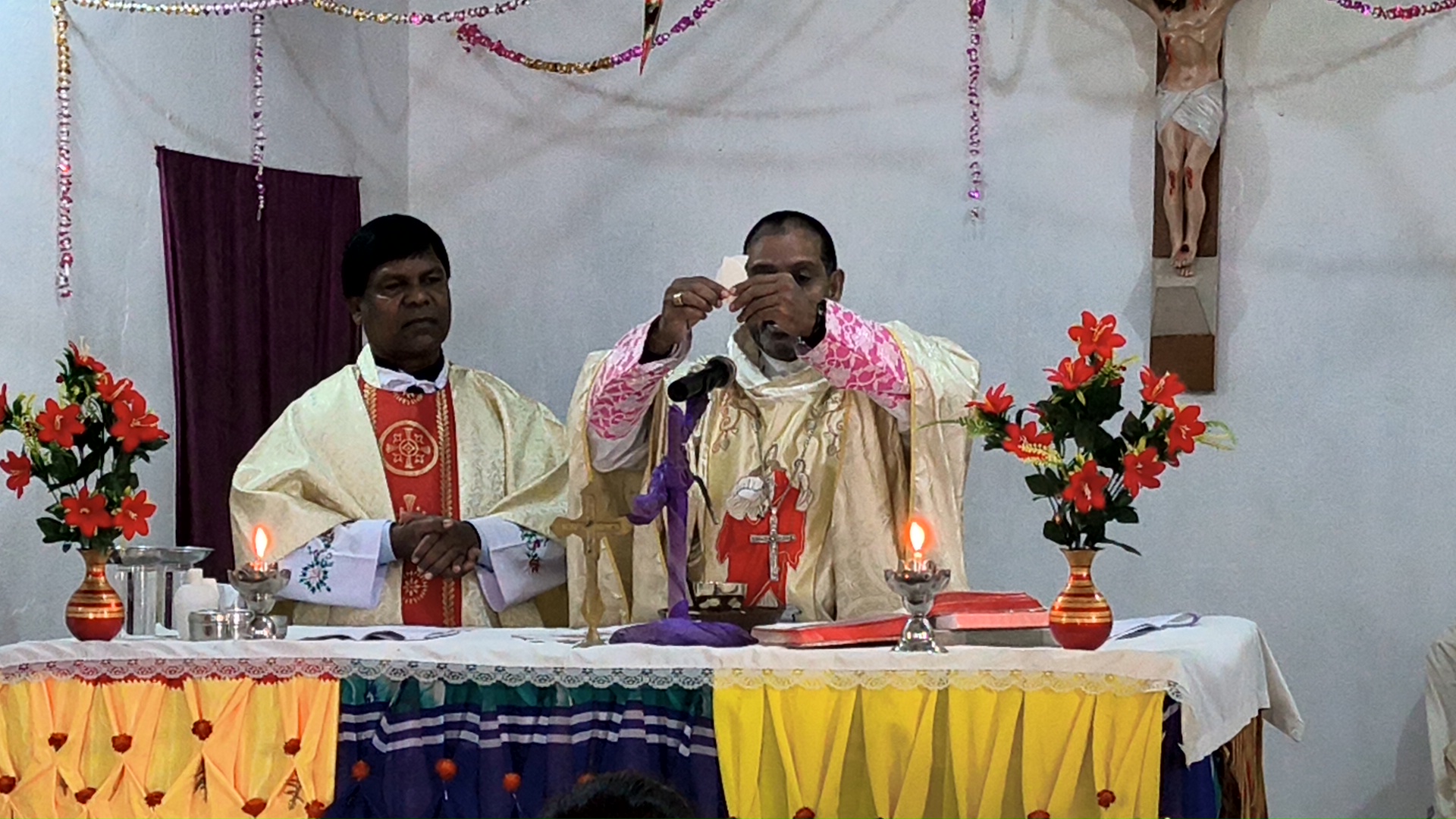 Bishop Theodore Mascarenhas, the Auxiliary Bishop of Ranchi and the Apostolic Administrator of Daltonganj Bishop Theodore celebrated the Christmas day Mass at Siris, a remote village in the Manika block of Jharkhand. There is a small Christian Catholic community in this remote village about fifty kilometres Daltonganj. The village is badly connected to the main road. An overjoyed community welcomed their Shepherd with song and dance, flowers and garlands.