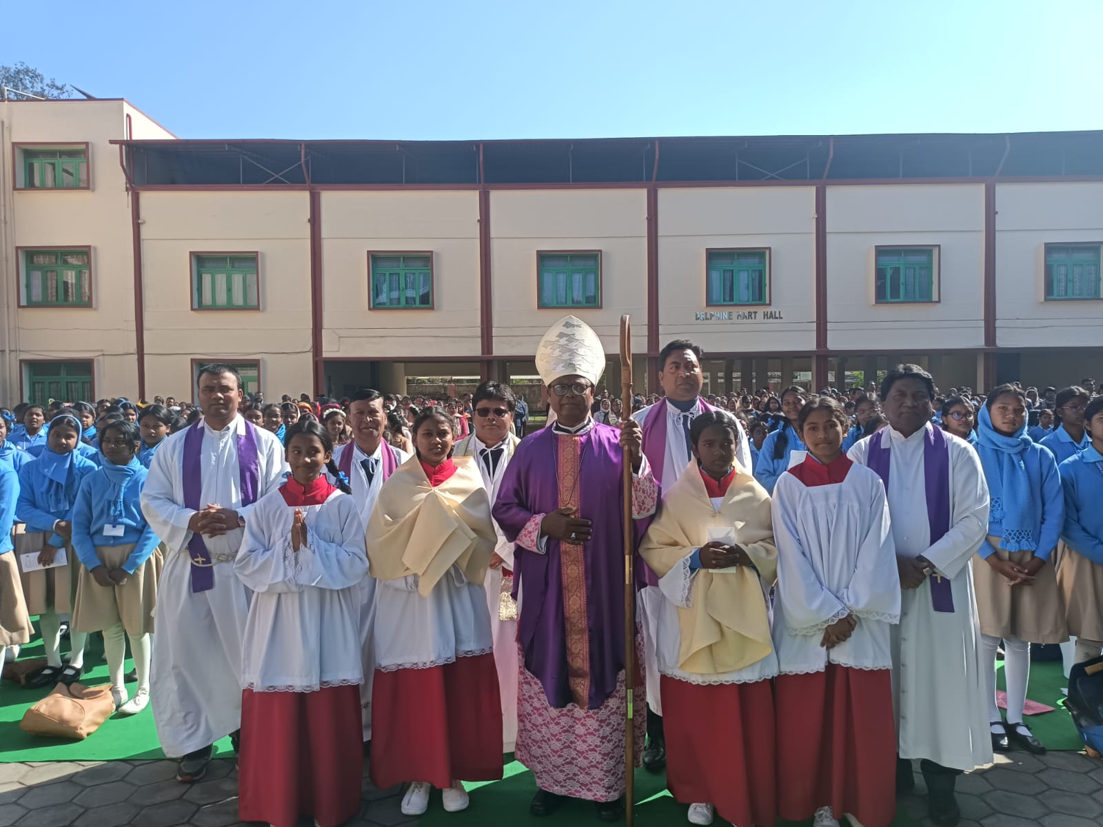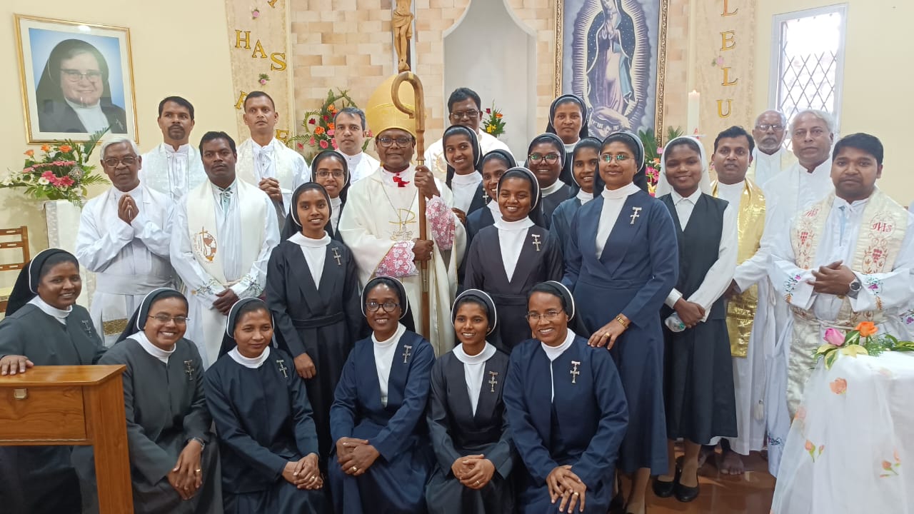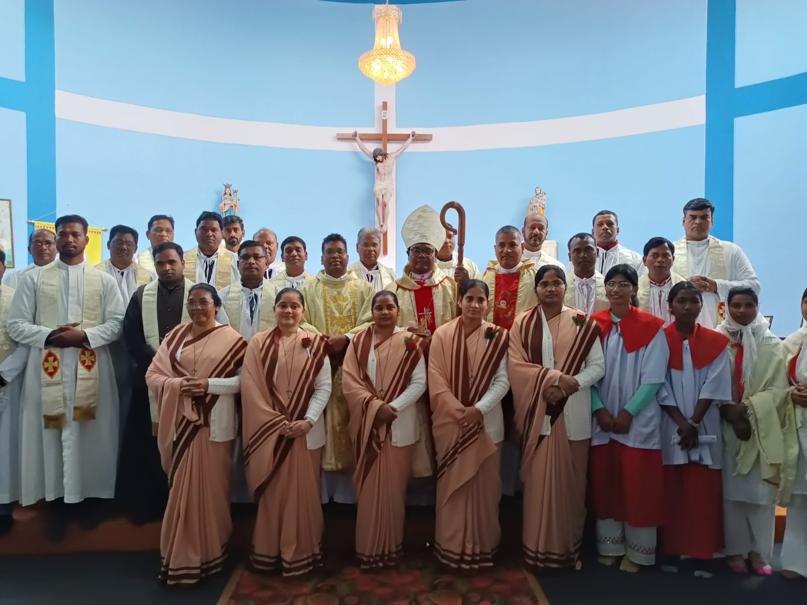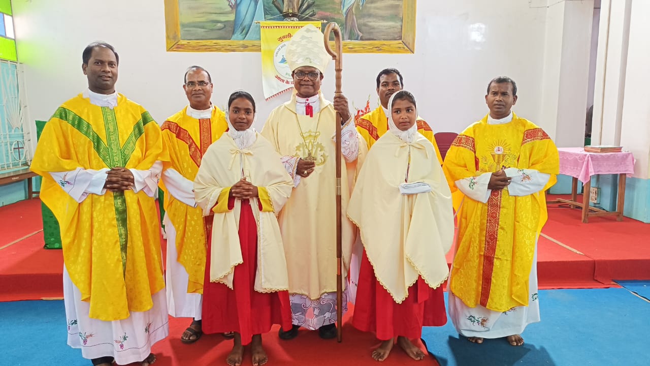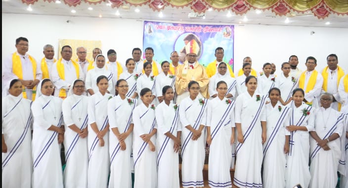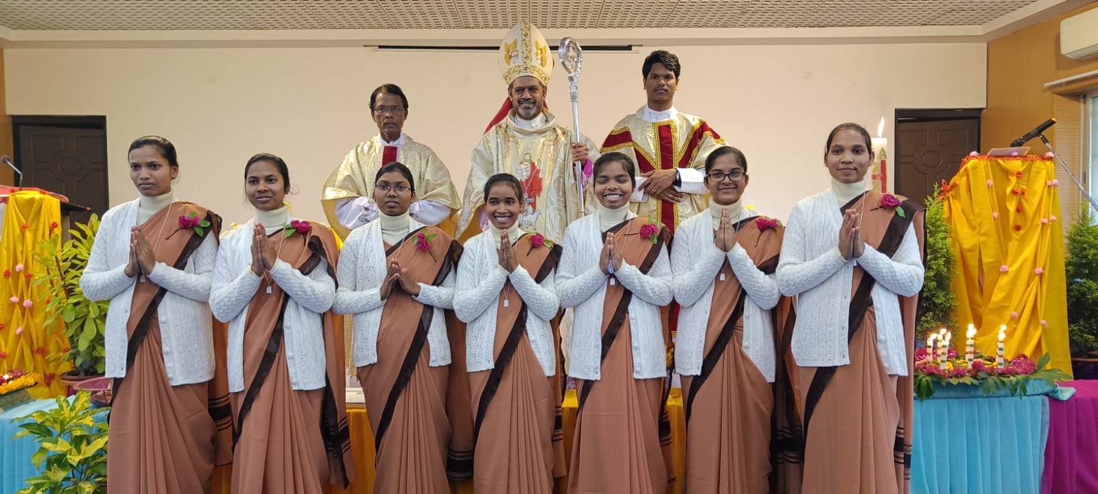 बिशप थिओडोर मस्कारेन्हास ने उर्सुलाइन कांके में सात धर्म्बह्नों को प्रथम व्रतधारण कराया