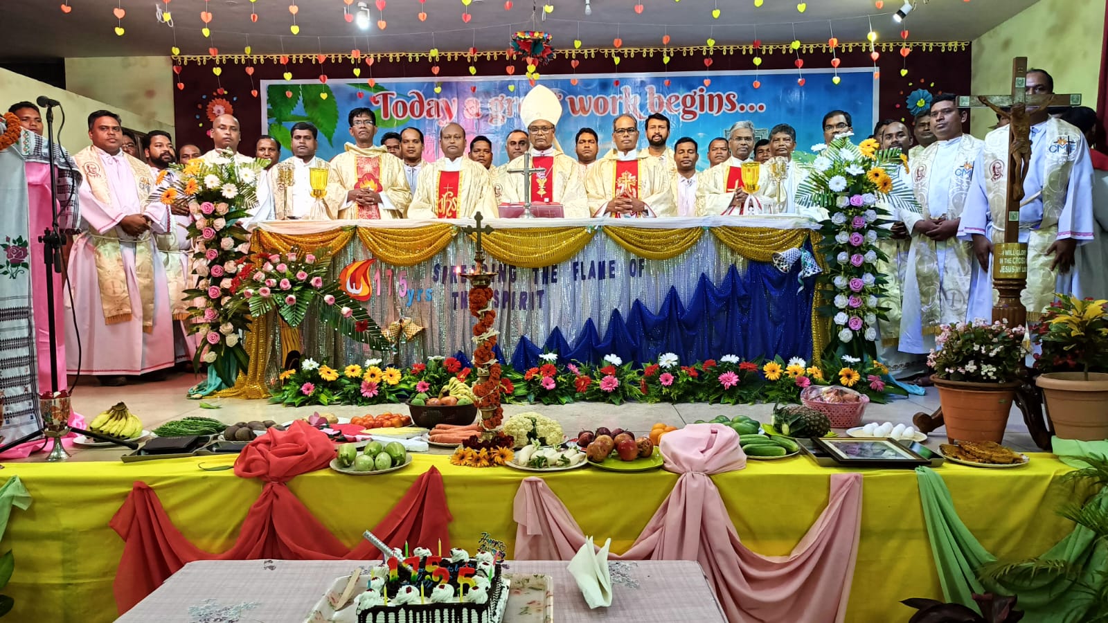 आर्च बिशप फेलिक्स टोप्पो एस जे कानीजाड़ी में नवनिर्मित ख्रीस्त राजा गिरजाघर की अशीष और उद्घाटन किया